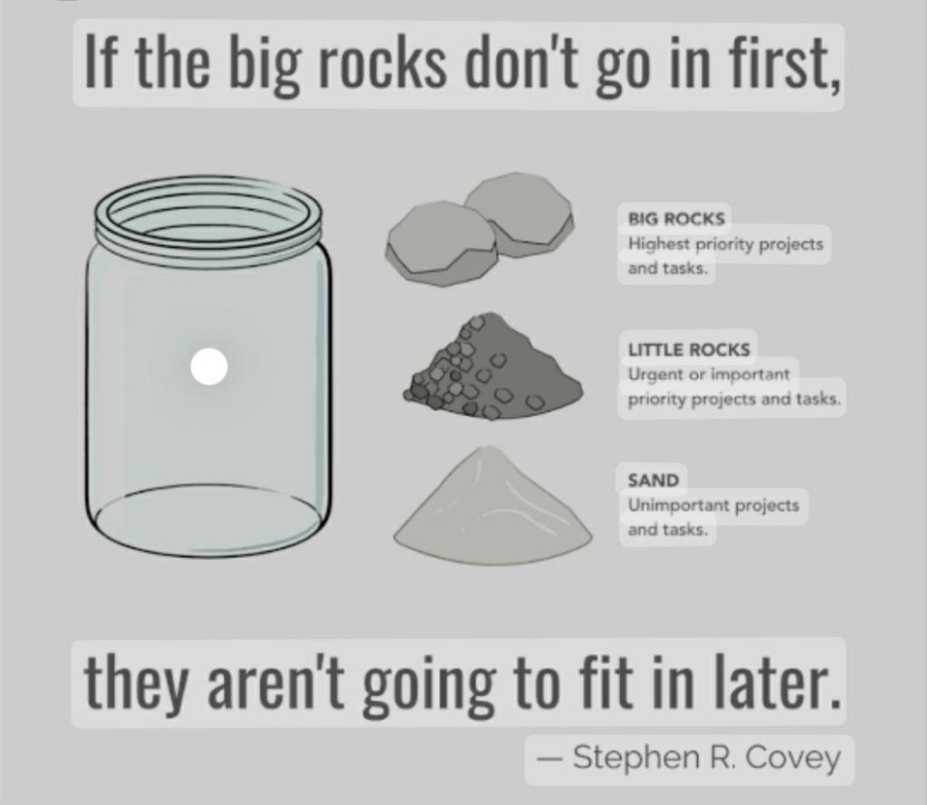 Let’s explore the concept of the “Big Rocks Theory” by Stephen R. Covey, which beautifully highlights the essence of true prioritization. The Big Rocks theory simplifies the understanding of what should take precedence in our lives. (Image: )